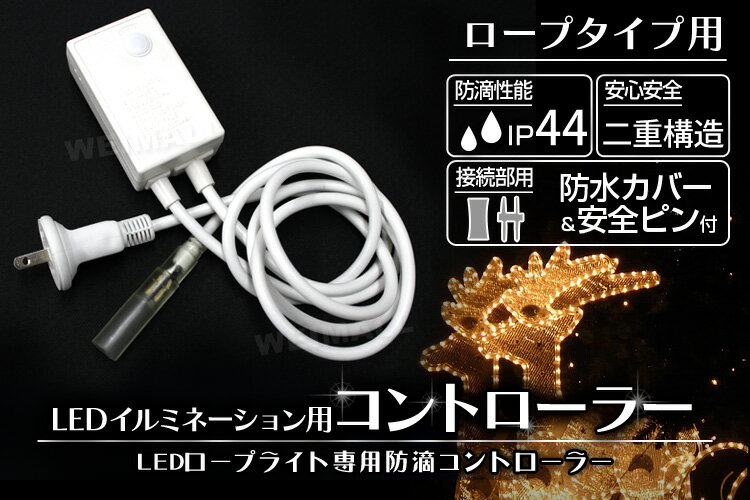 <点灯パターン> ・全種類ミックス点灯 ・ウェーブ点灯 ・隣と交互点灯 ・隣と交互フェード ・追いかけフラッシュ ・フェードイン・アウト ・輝く様にフラッシュ ・常時点灯 商品仕様 色:白 点灯パターン:8パターン 定格電圧:100V〜110V 防水レベル:IP44 導線:ニッケルメッキ銅線使用 商品内容 コントローラー本体 ×1 連結ピン ×1 保護シート ×1 注意事項 ・ロープライトにピンを差し、反対側をコンセントプラグの穴に差し込みます。