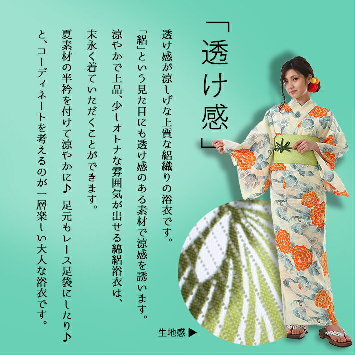 ●平織の浴衣よりも透け感が強いため、スリップや肌着のご着用をおすすめいたします。
