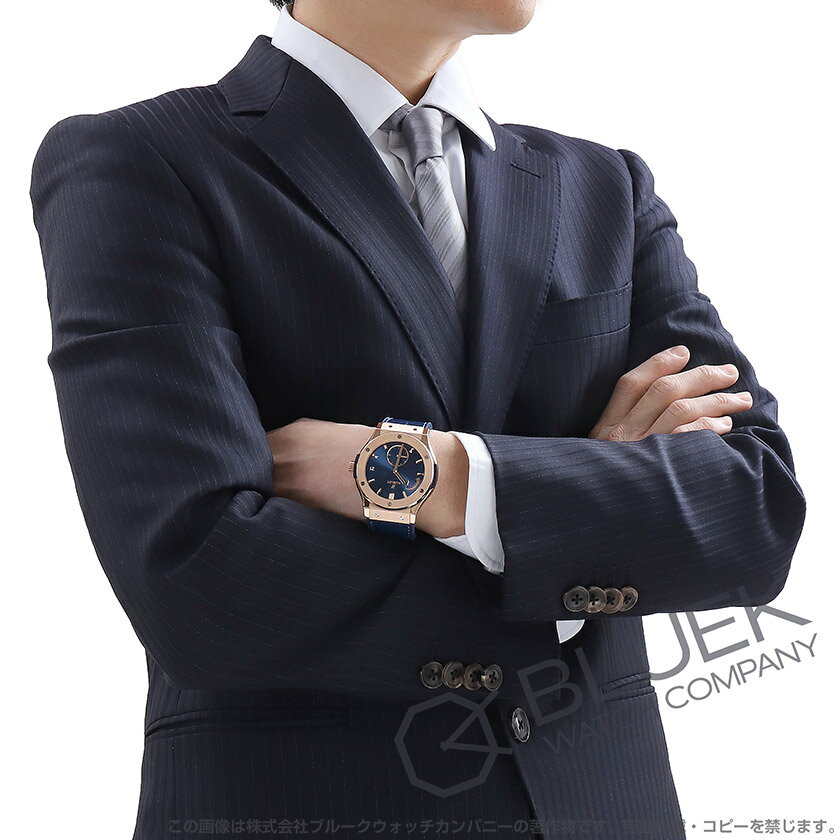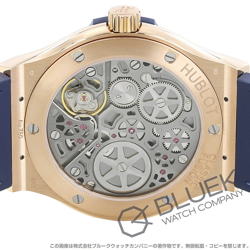 ウブロ クラシック フュージョン 8デイズ キングゴールド ブルー 金無垢 パワーリザーブ アリゲーターレザー 腕時計 メンズ HUBLOT 516.OX.7180.LRブルーク商品番号 HU516OX7180LR8日間稼働の手巻きモデル!金無垢ウブロ 4575%の純金と残り25%に通常よりも多く銅とプラチナを配合した「キングゴールド」は、赤みの強い色合いと経年変化による変色にも強いウブロ独自の18K素材。